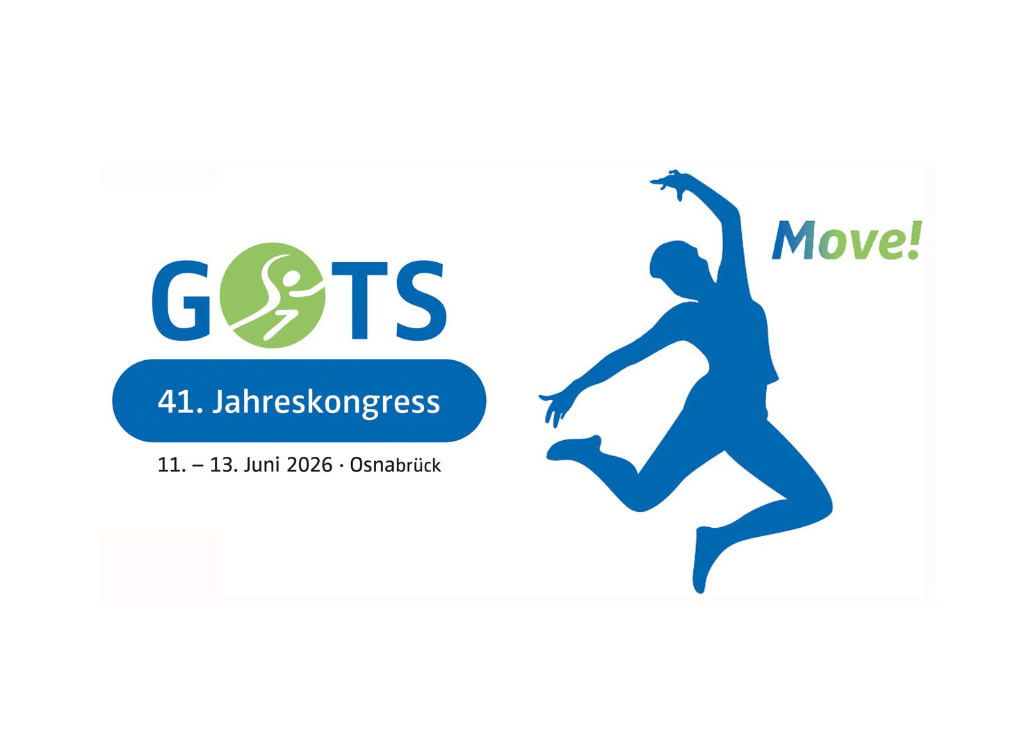 Unter dem Motto ‚MOVE‘ veranstaltet die Gesellschaft für Orthopädisch-Traumatologische Sportmedizin (GOTS) ihren 41. Jahreskongress am 11. und 12. Juni 2026 in der OsnabrückHalle. Mit Beteiligung der Weltgesundheitsorganisation (WHO) und des Internationalen Olympischen Komitees (IOC) bieten wir Ihnen erneut ein abwechslungsreiches wissenschaftliches Programm, u.a. zu den Schwerpunkten: